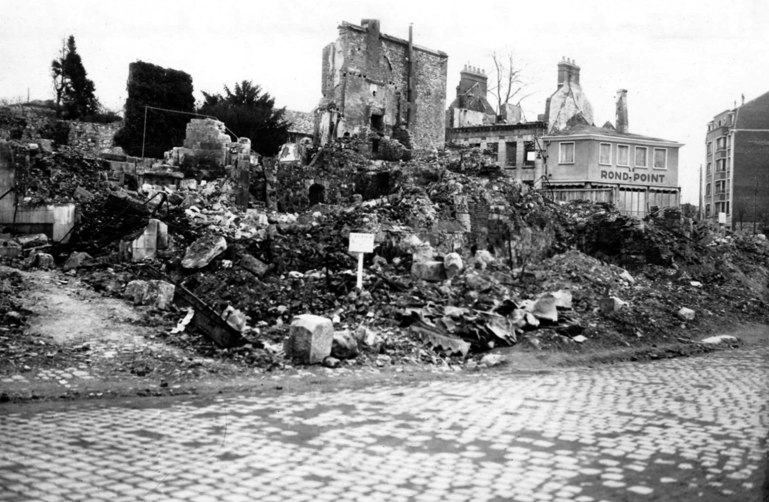 L’ensemble du quartier de la « place du Marché au Beurre » est entièrement remanié lors de la reconstruction après les bombardements de juin 1944. Les deux îlots de maisons compris entre la rue d’Orbiquet, l’avenue Victor Hugo, la place Boudin-Desvergées (ancienne place Marché au Beurre) et la porte d’Orbec ont disparu. La rue au Char est prolongée jusqu’à l’ancienne église Saint-Jacques, l’avenue Victor Hugo jusqu’à la porte d’Orbec. Les rue d’Orbiquet, du Marché aux Bœufs sont supprimées. Idem pour la rue d’Ouville, partie Est. La rue du Mouton Blanc devient la rue d’Ouville. La Halle au Beurre ne sera pas reconstruite.