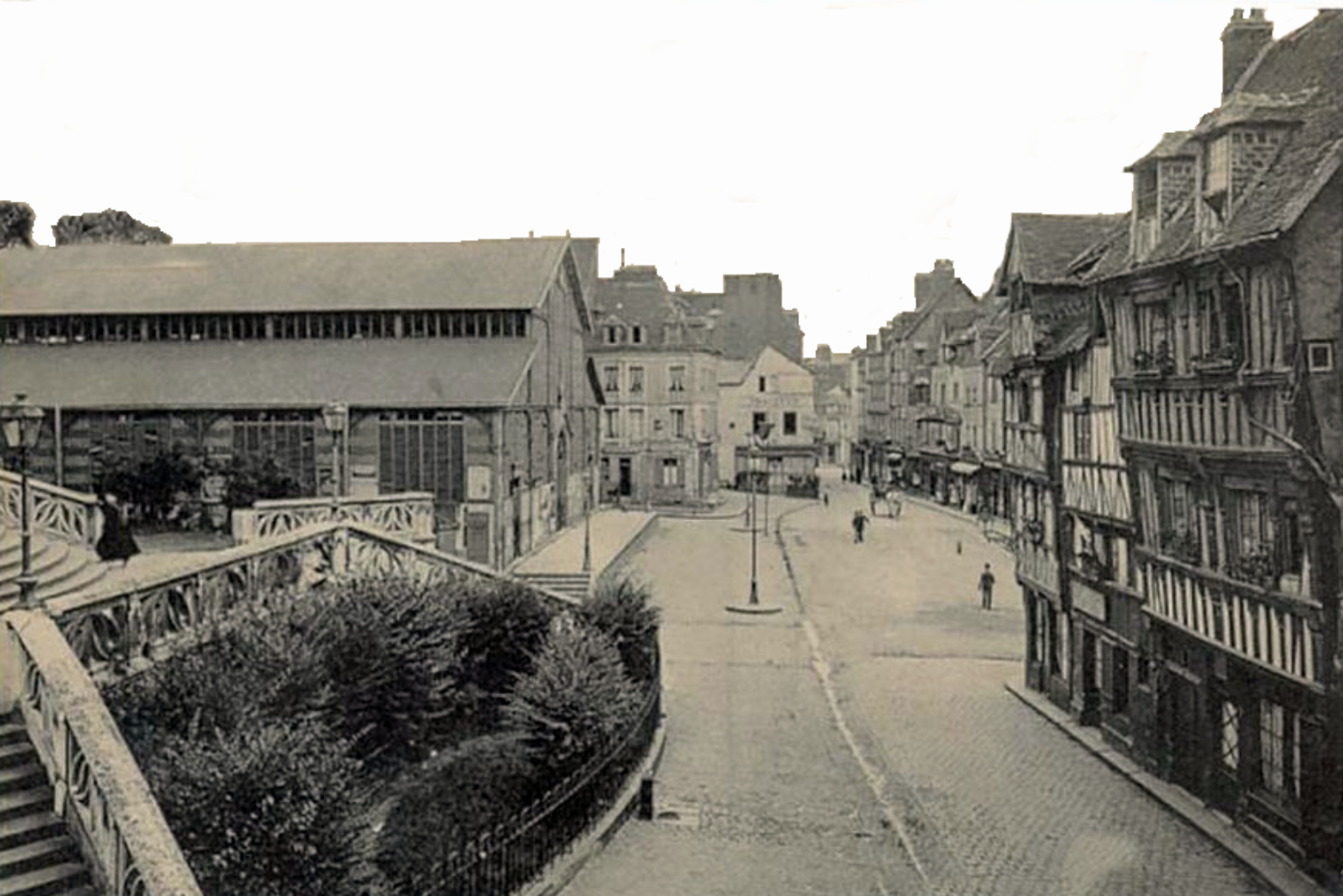 Rue du Marché aux Bœufs depuis la porte d’Orbec.