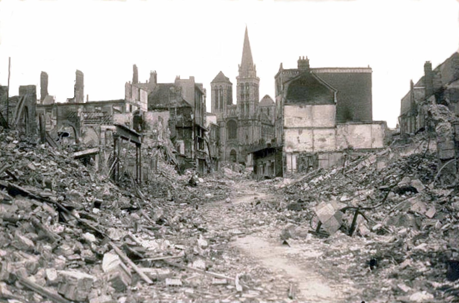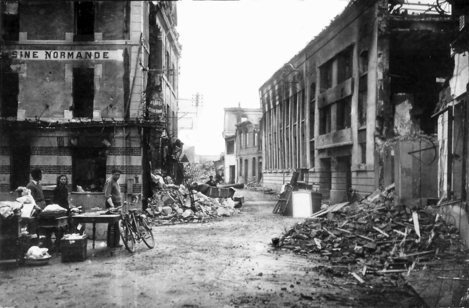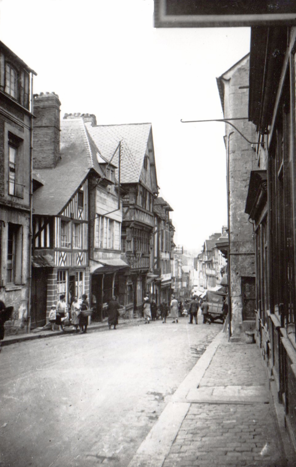 Source: INA, Institut national de l’audiovisuel. Angle Rue au Char, le bas du quartier de la rue H.Chéron, puis à hauteur de l’actuelle place du Pays d’Auge,(ancien emplacement de l’usine Henrion, Jeep qui passe) et les environs de la rue du Moulin à Tan vers la Place Thiers.