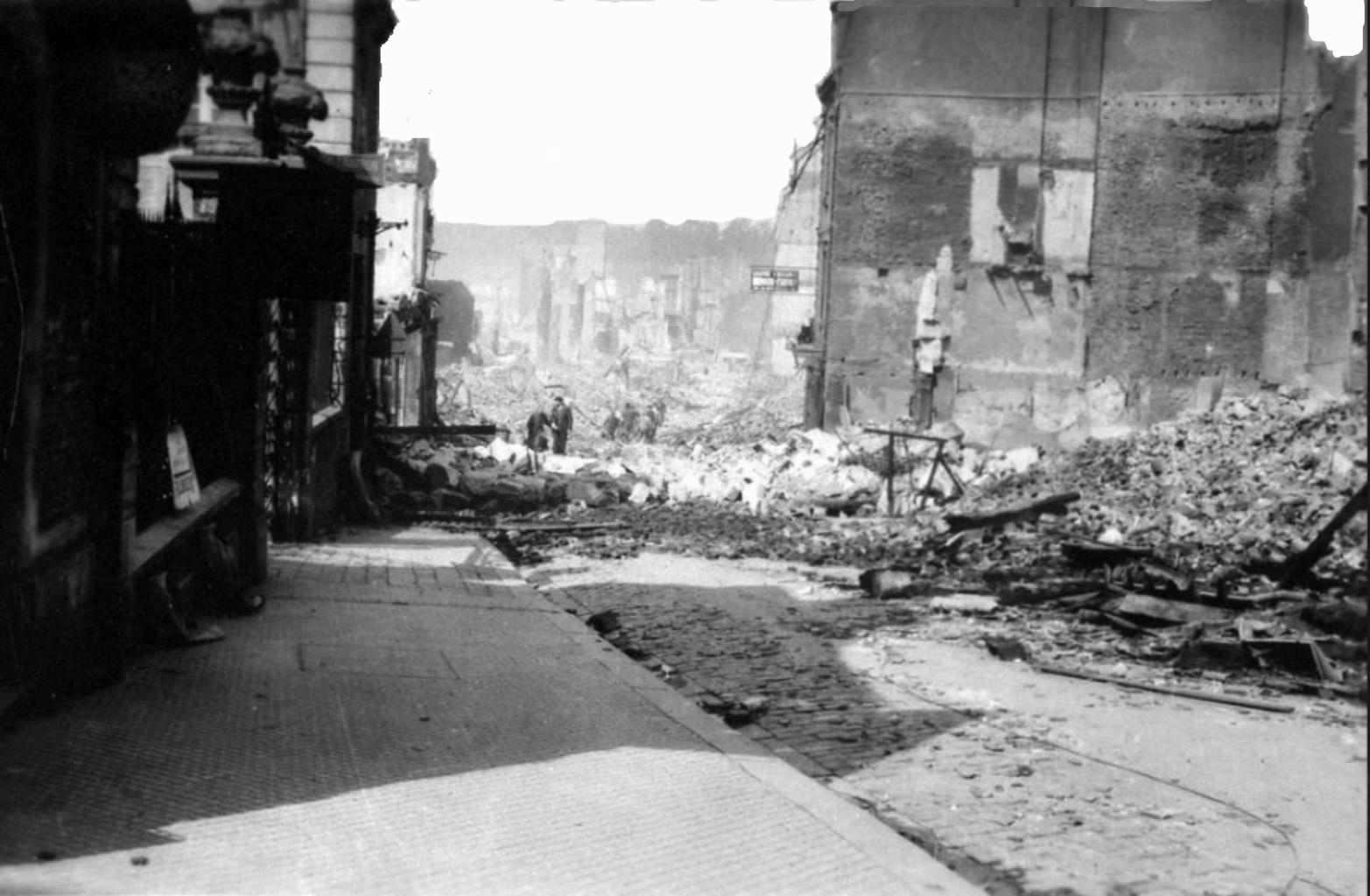 Cette adresse correspond en 1901 à celle du fruitier Liard (n° 70) et des peintres Vaquet et Cels (n° 74). Après la Reconstruction, on trouve à cet emplacement (n° 56) les tissus Rogeau *, attestés en 1968, (et au n° 54 un commerce dénommé La Boutique du Cuir, remplacé vers 1984 par l’agence Lexo-immobilier, et aujourd’hui par les opticiens ATOL.