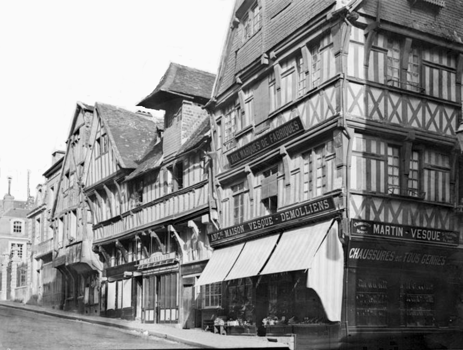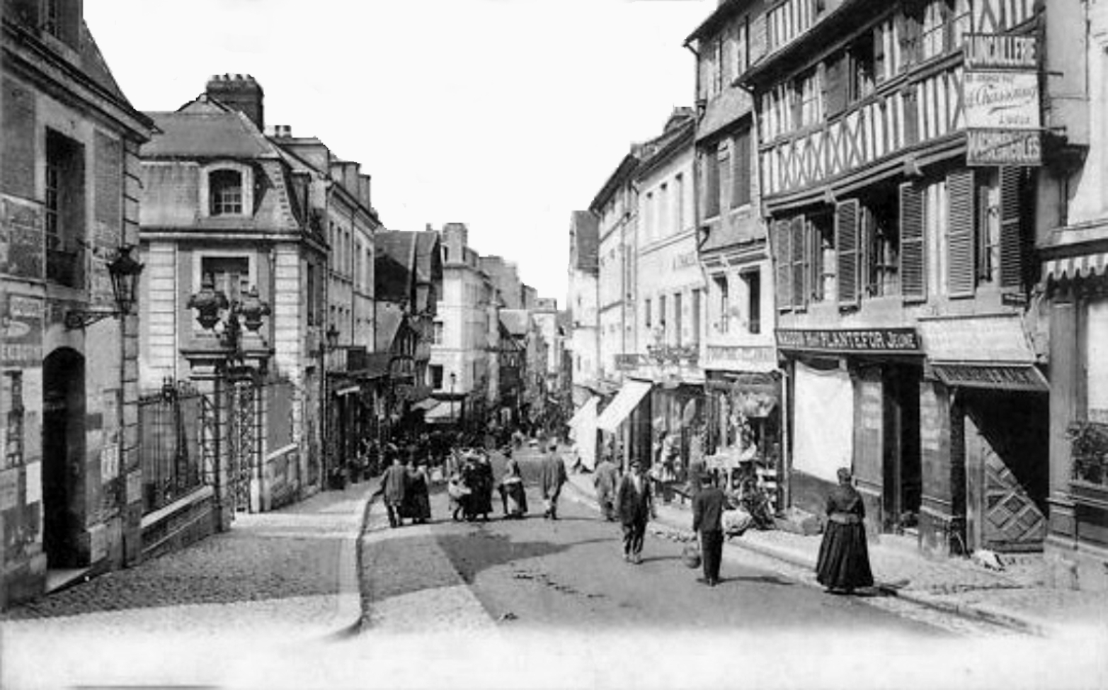 [2] Forme sans doute remaniée par Henri de Formeville (on attend Grand Rue), mais du moins la date est-elle exacte : deux capons de rente sur Regnault le Vachier pour ung travail à ferrer chevaux assis devant son huis sur le pavement de la Grande Rue 1451 CEL [paroisse Saint-Jacques, § 7].