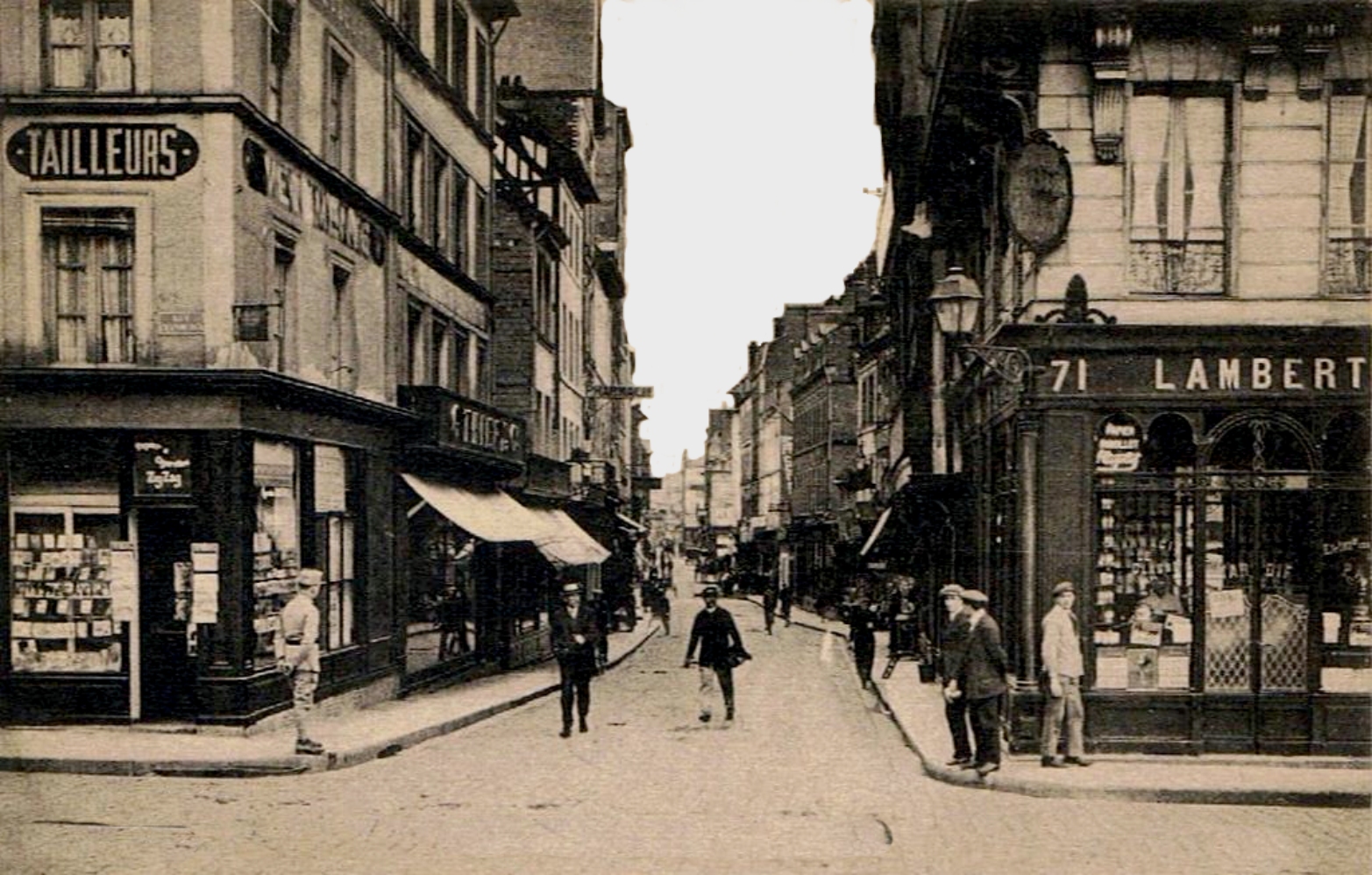 Dans des titres anciens de maison de cette rue, elles sont indiquées comme étant de la paroisse St.Aignan, et cependant dans les papiers de Lisieux, il n’est point parlé de paroisse de ce nom.